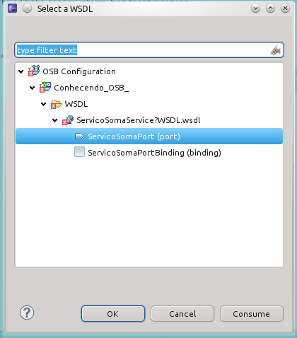 Clique em ok. Agora iremos selecionar o Port que é o ServicoSomaPort. Selecione e clique em ok depois talvez apareça outra janela clique em Yes.